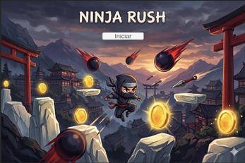 Ninja Rush é um jogo de plataforma em que você controla um ninja ágil que precisa coletar moedas e fazer a maior pontuação possível.